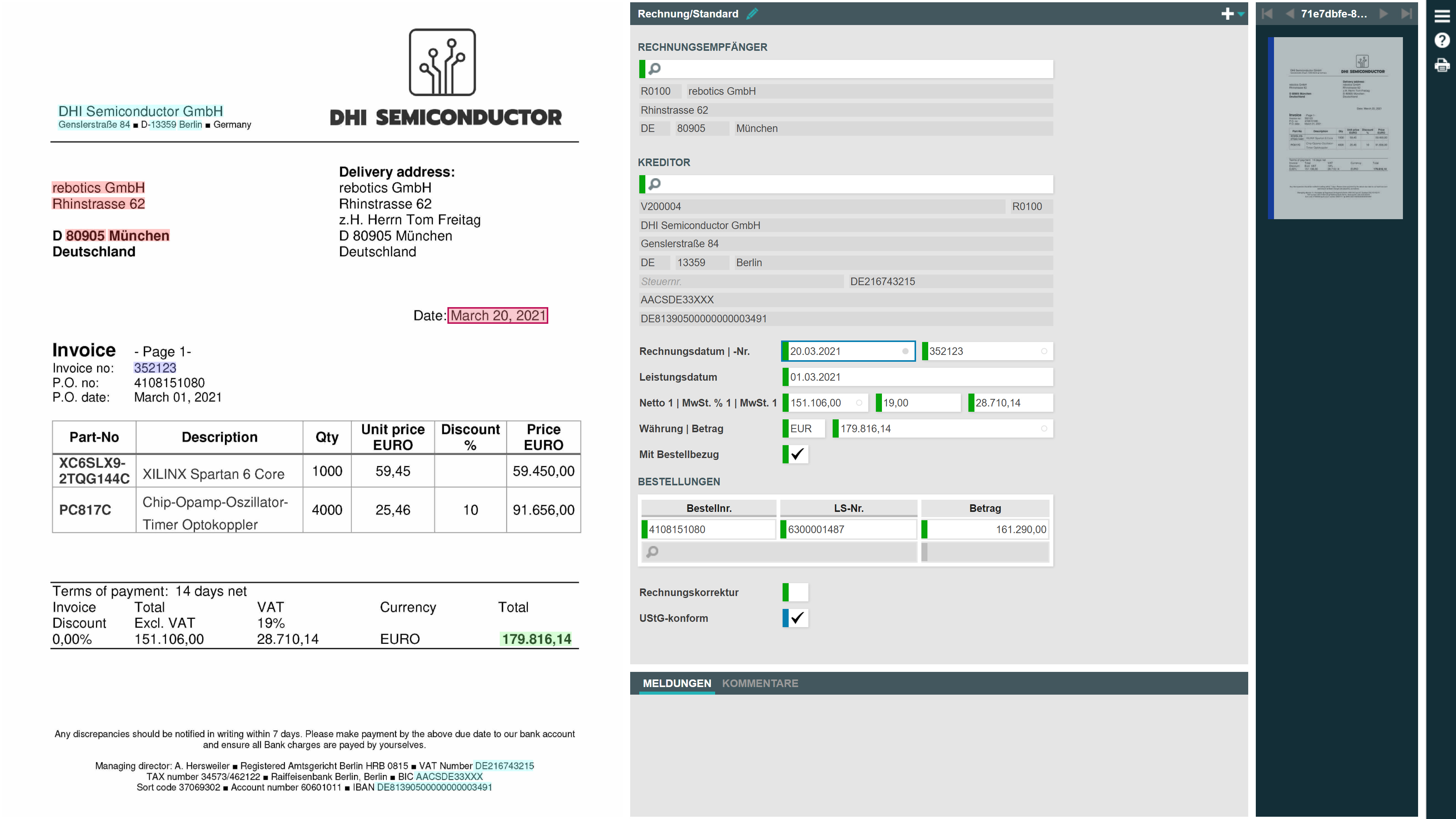 Das Ziel von Josef Gartner war es, die Datenqualität zu erhöhen, automatisierte Prüfprozesse zu haben und auf Basis des wachsenden Geschäfts zu skalieren. Die Mitarbeiter*innen sollten von unnötiger Tipparbeit entlastet werden. Bei der Suche nach einem geeigneten System war die Herausforderung, ein Produkt zu finden, das sich direkt in den vorhandenen Eingangsrechnungsprozess und die Archivierung einbinden lässt, ohne in den laufenden Betrieb und im digitalen Ablauf essenziell eingreifen zu müssen. Zudem sollte das System prüfen, ob die Daten auf der Rechnung mit den Stammdaten aus SAP übereinstimmen sowie weitere gesetzliche und formelle Validierungen durchführen.